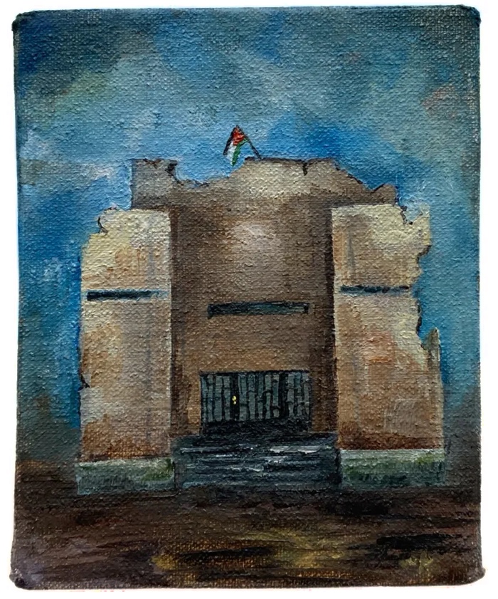 Daniela Ortiz’s small paintings of Decolonized Museums are inspired by several instances of censorship she faced in Germany following her expression of solidarity with the victims of war crimes in Palestine.
