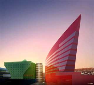 In 1975 came the iconic Blue building, a.k.a. “The Blue Whale.� 1988 saw the opening of the Green building. Now, the “Red� building is finaly about to complete the triad of buildings Cesar Pelli first envisioned in the mid-1970s for the Pacific Design Center complex in L.A.