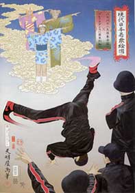 Hisashi Tenmyouya‘s works are a blend of traditional Japanese motifs and elements of modern Japan. His work draws on the traditions and history of his country, but also on foreign history and modern life, particularly life in the US.