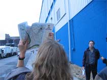 Site-specific access codes entered on our mobile phones through the Tourist Hotline provided us with audio information about the current site that we had discovered. For example, when we arrived in central Baghdad’s Firdos Square, we received information about the toppling of the statue of Saddam Hussein and how this might have been a stage event as most of the spectators of it were American soldiers and journalists.