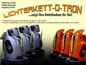 The homepage of the notorious German satirical magazine Titanic is currently featuring a hillarious splash-screen: the Lichterkett-O-Tron. Referring to the Germans’ preference for running out on the street and form long lines of people holding candles (Lichterkette) whenever there’s something to protest for/against, they propose automatization:
