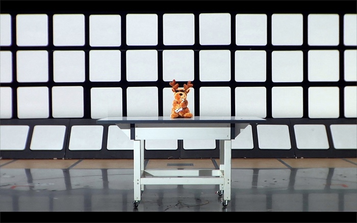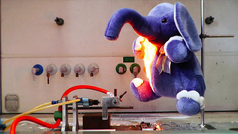 TÜV (Technischer Überwachungsverein, German for Technical Inspection Association) is an independent company that tests, inspects and provides European certificates of suitability to goods and technological commodities. Anna Franceschini travelled to its Nuremberg headquarters to shoot a video showing how toys and other products for small children are put to the test. Crushed, compressed and burnt, plush reindeer and toy pandas are exposed to brutal stress tests and mechanical apparatus. A colourful violence necessary to ensure that the toys are deemed worthy of filling our shop windows.