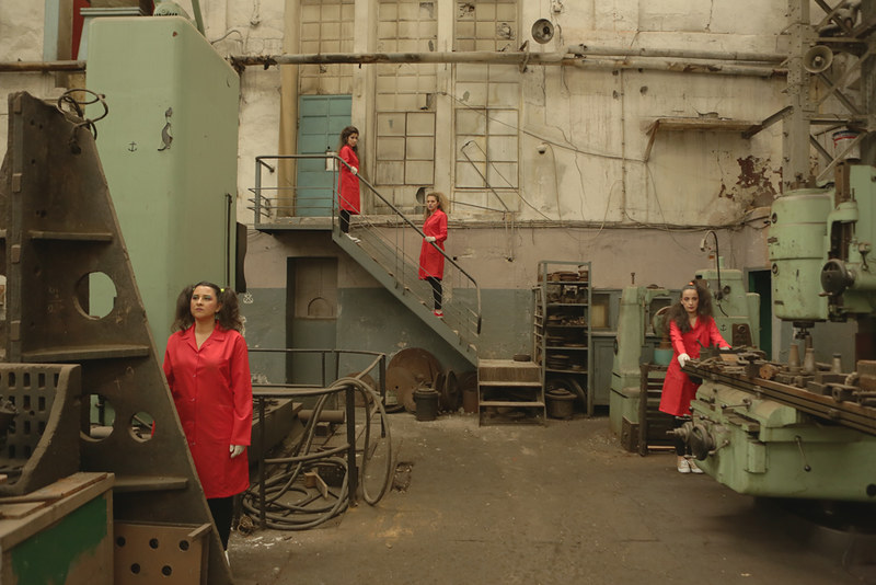 Elena Bellantoni travelled to Italy, Greece, Serbia and Turkey to film groups of women singing the protest song Bread & Roses in their native languages. The settings of the performances are an abandoned airport, a Brutalist flat building, a former factory, an old shipyard, a former factory. The derelict buildings embody a past characterised by faith in a certain idea of “progress” and a present made of precariousness and uncertainty. The future of these spaces is uncertain. Maybe they’ll be revamped into art spaces or shopping malls. Maybe they will just be dismantled.