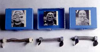 One of my favourite (although since i left my boring work i don’t feel the need to buy one anymore) is the Flux Smile Machine that George Maciunas (one of the original Fluxus artists) ideated in 1972. This kind of gag forces you to smile or rather to makes an awful grimace, “making it an atavistic and threatening gesture directed against bourgeois society.”