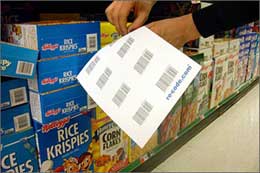 Reminds me of a project I saw at last year’s Transmediale. Re-Code.com is a service which encourage people to enter in barcodes of cheap products, print them out on sticker-paper, and place them over the barcodes of expensive products. Their site is now down due to threats from Wal Mart attorneys, but you can still access the videos.