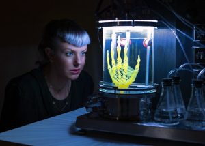 Regine August 15, 2022 Artist Amy Karle 2018 inspecting her work REGENERATIVE RELIQUARY_photo Ars Electronica Vanessa Graf